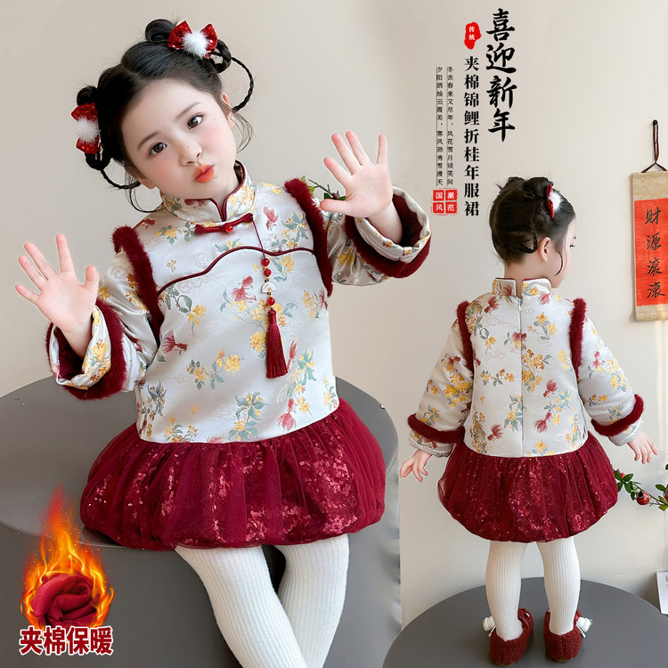 时尚王童装工作室&赫本风丝绒亮片礼服泡泡袖公主裙