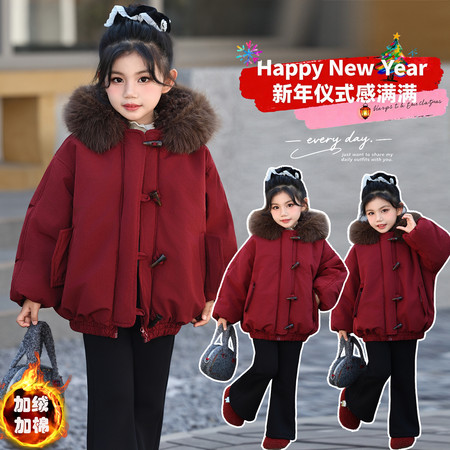 妮哆熊&牛角扣双门襟毛领年服派克服现货