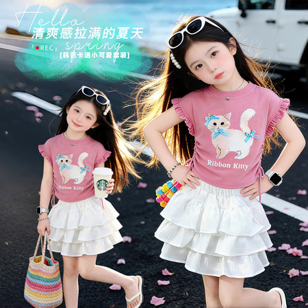 米咔精灵&66060眼镜KT猫T恤套装夏季甜美休闲