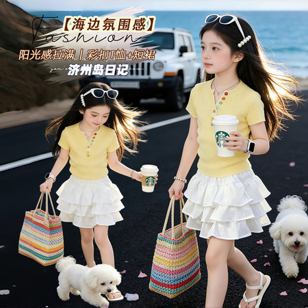 爵仕小黄鸭&JS-321女童夏季洋气坎肩两件套