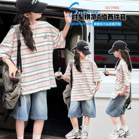 双鱼妮妮&SY-2619女童假两件条纹T恤套装