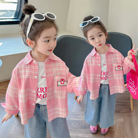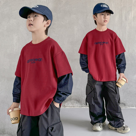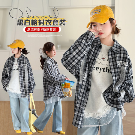 漂亮优贝童装&2919款格子衬衫T恤牛仔裤三件套