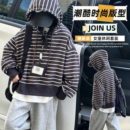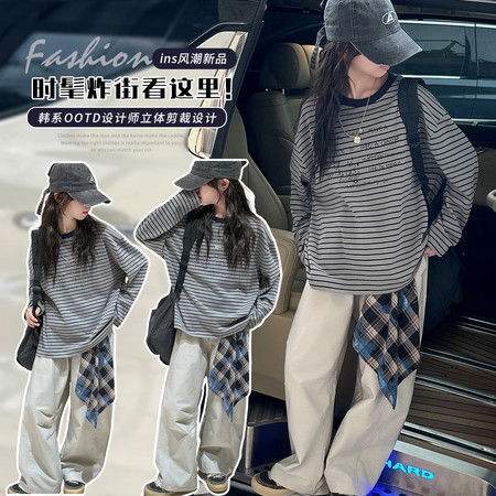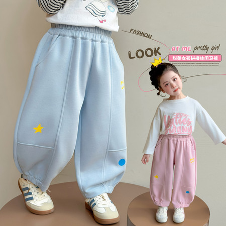 星星年华&DX03885小女孩格子领卫衣拼接裤脚套