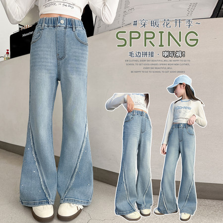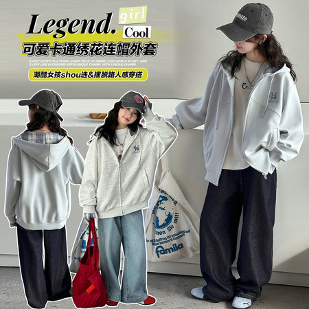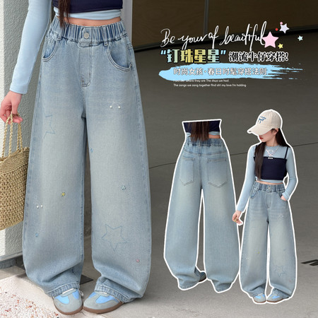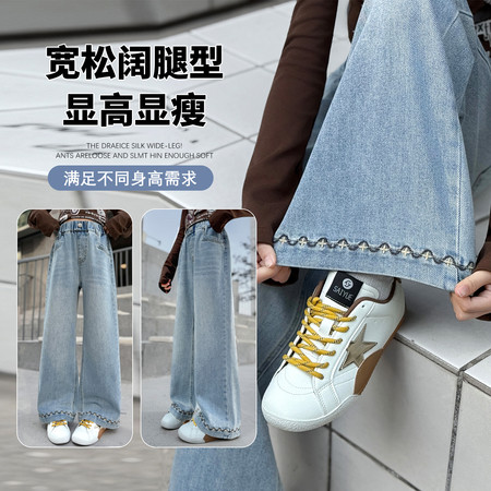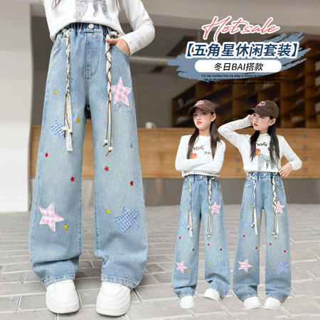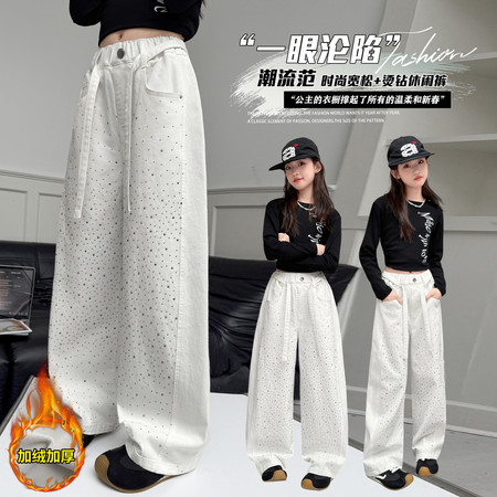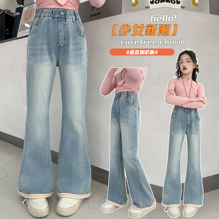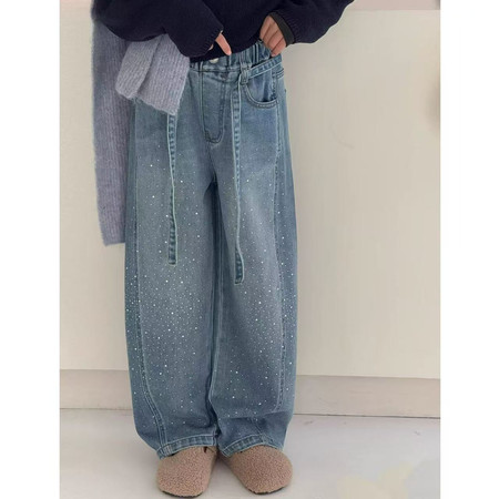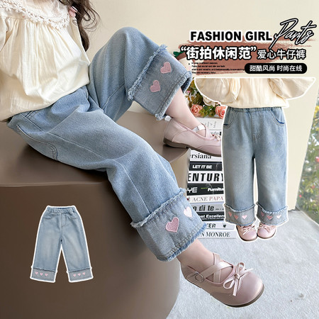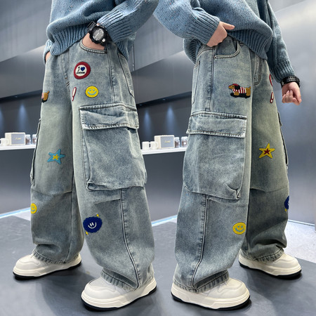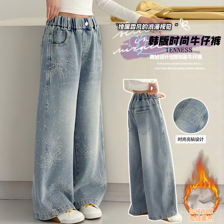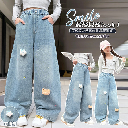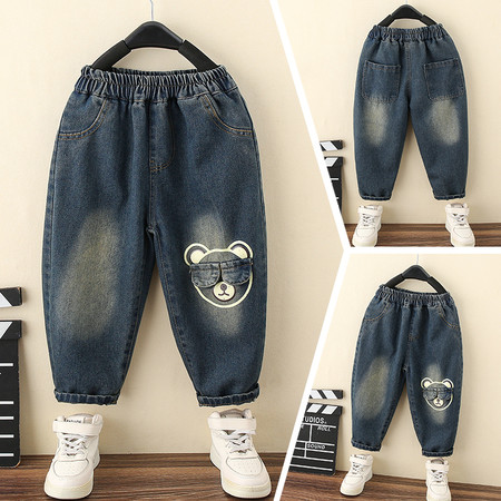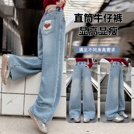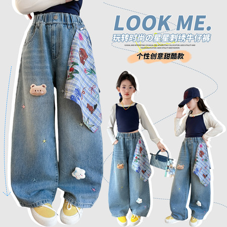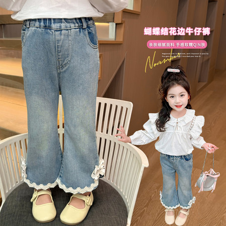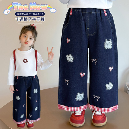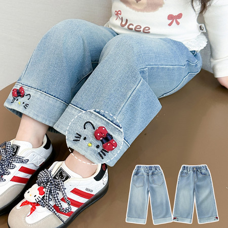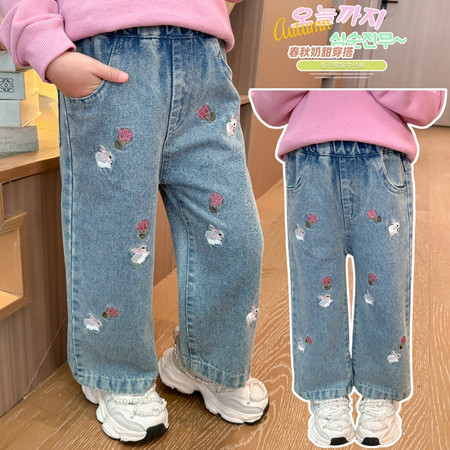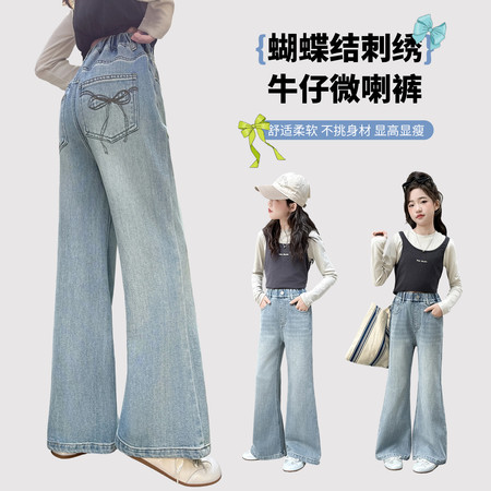D219蝴蝶结卡通刺绣加绒牛仔裤