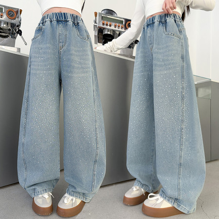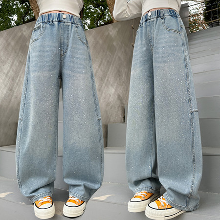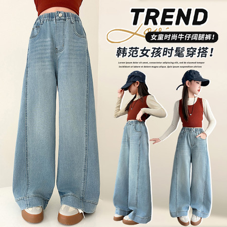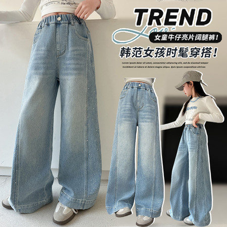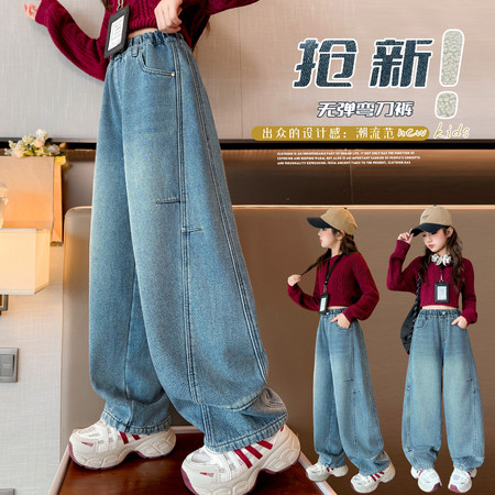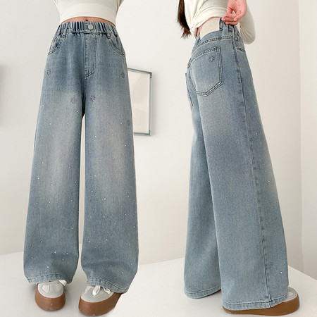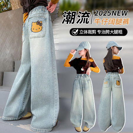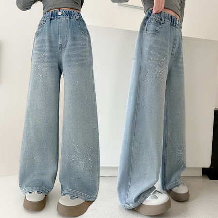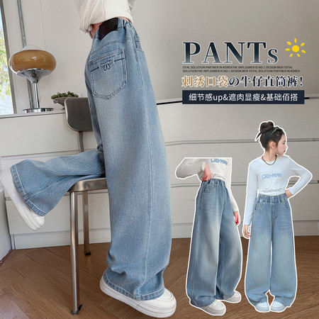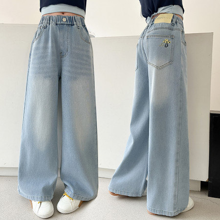 睿豆豆&2605时尚贴布绣花朵牛仔阔腿裤