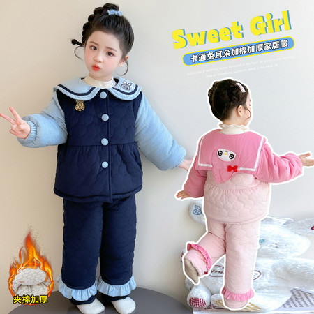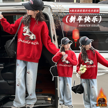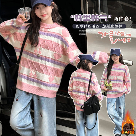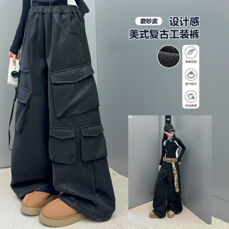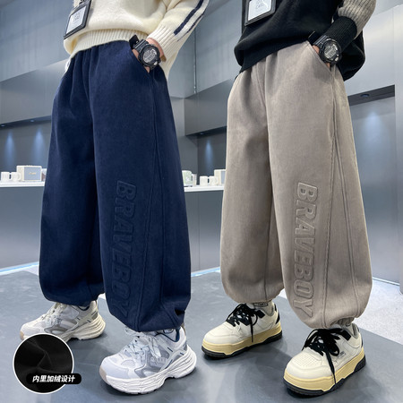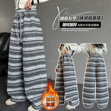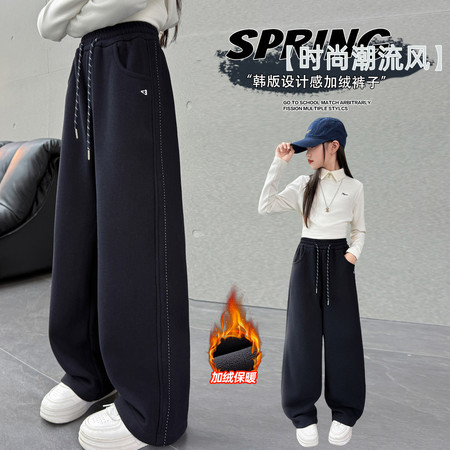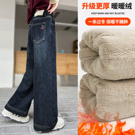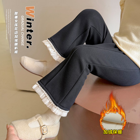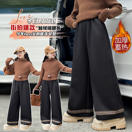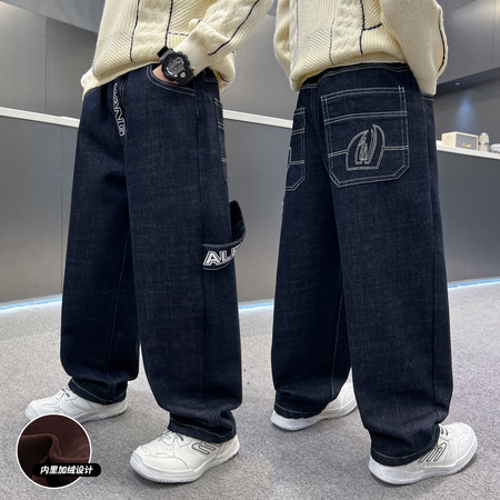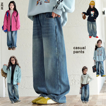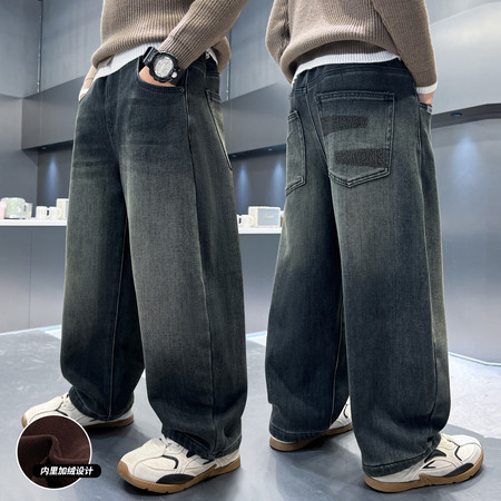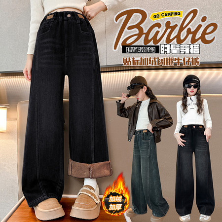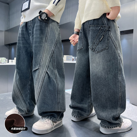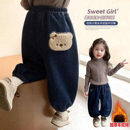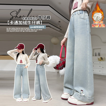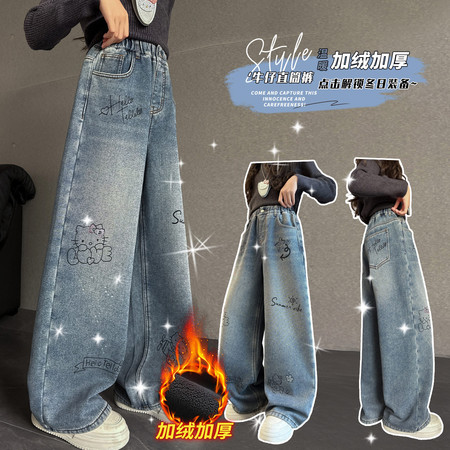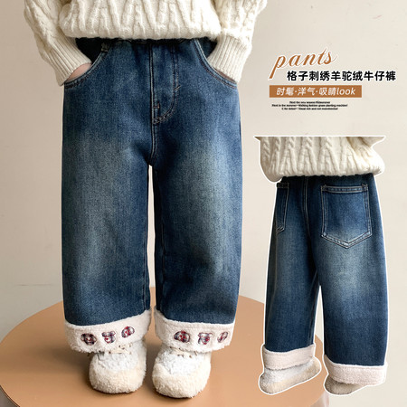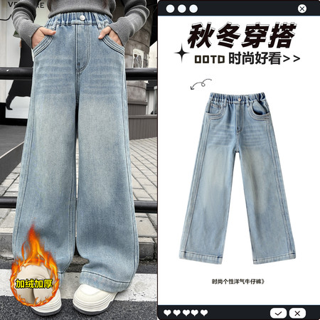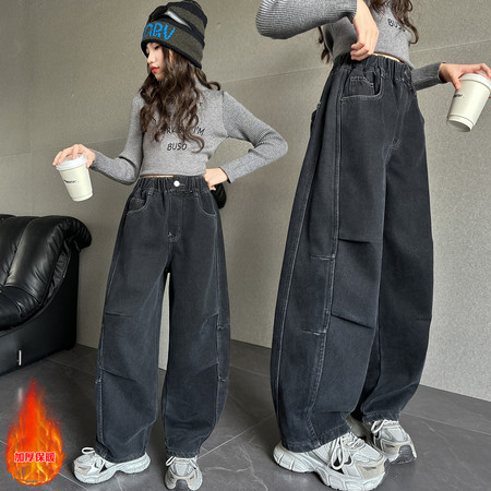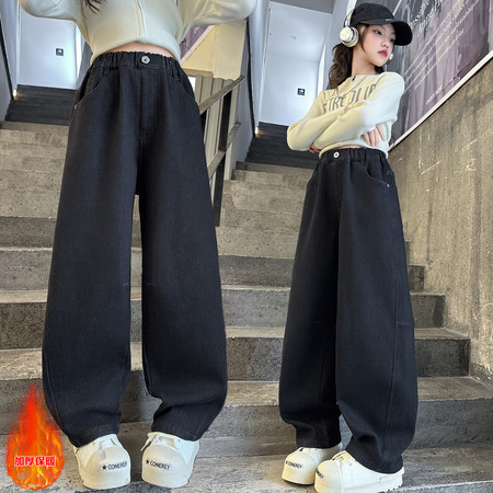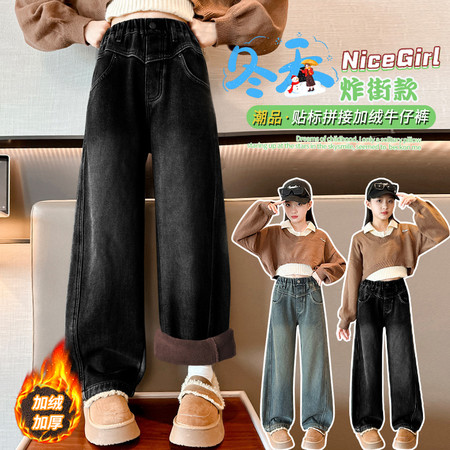豪涵童装&女童冬款加绒拼接弯刀牛仔阔腿裤8871