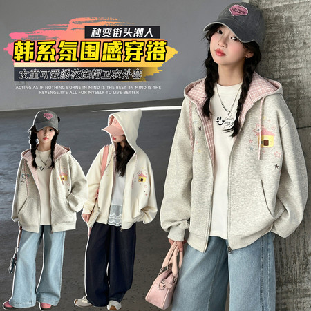 睿豆豆&2607时尚连帽格子裤套装