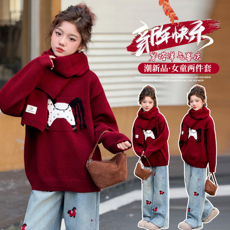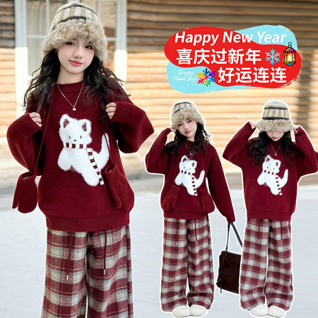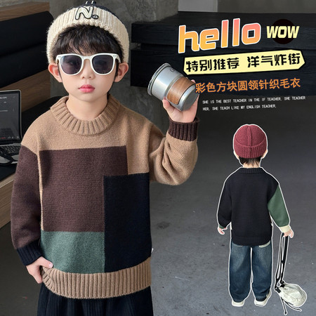 丸子家(贝壳笛)&拼色毛衣居家两件套