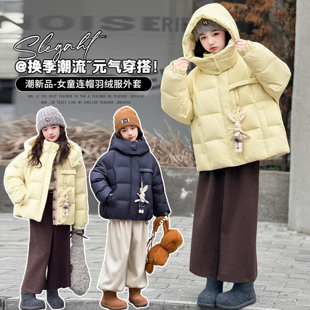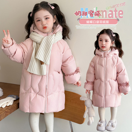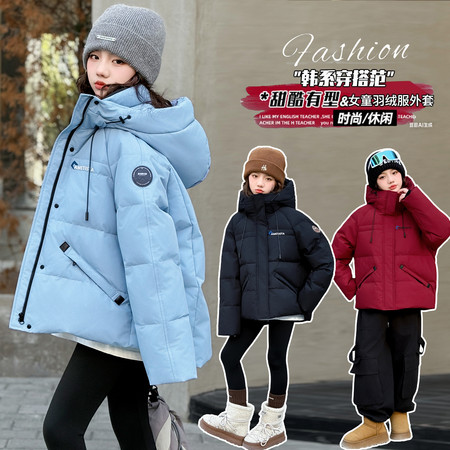 麦吉&2498拼色蝴蝶字母压花羽绒服