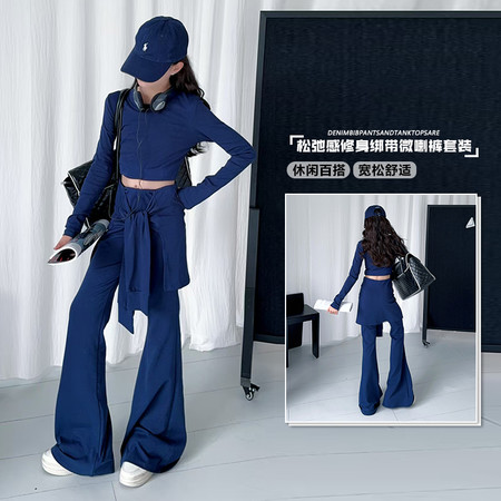 皖伴贝童装&2026-5藏蓝色修身绑带套装