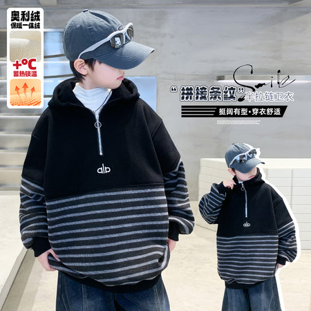 亿棵树童装&Q1290款航线棉衣连帽毛衣套装