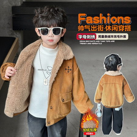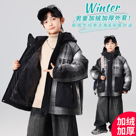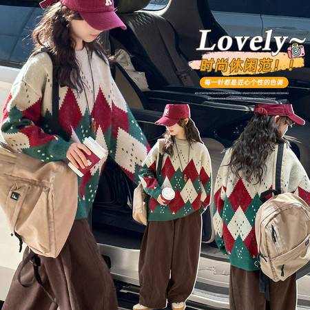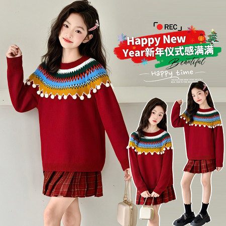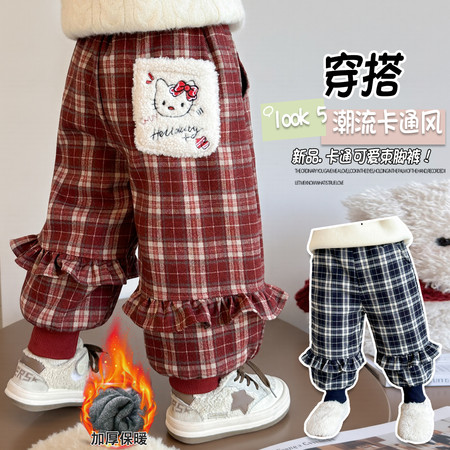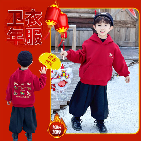 亿棵树童装&Q1322款红毛衣加绒格子裤套装