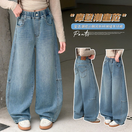 豪涵童装&冬款羊驼绒腰头贴标条绒直筒裤2650