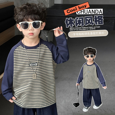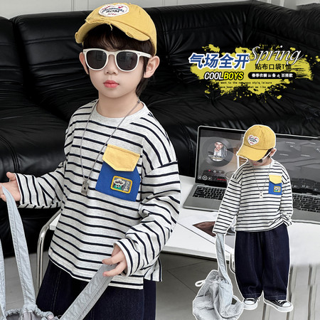 佩奇布叮&2338条纹贴标T恤模特