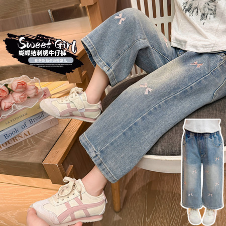 七色雨&25A01蝴蝶结刺绣牛仔裤