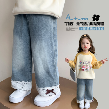 薇美&女童牛仔弯刀裤