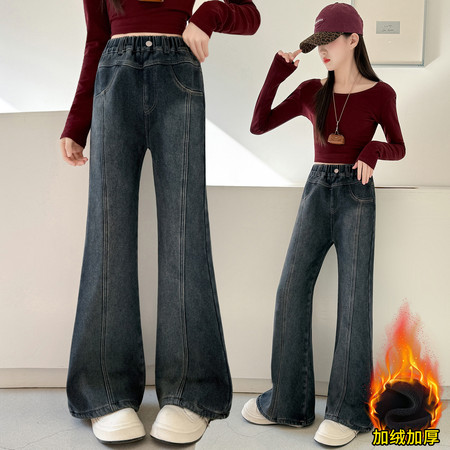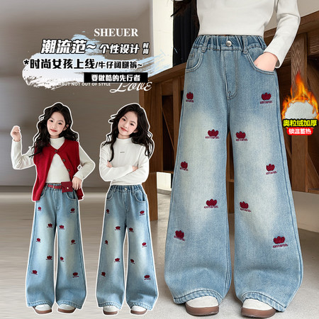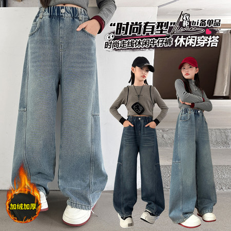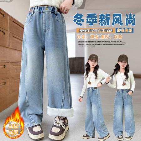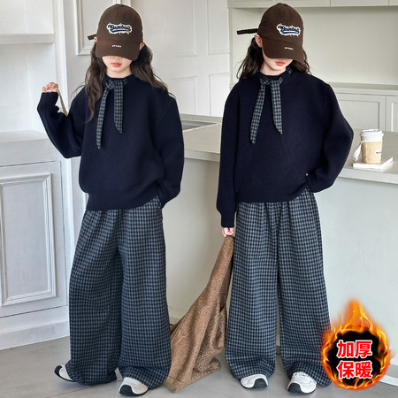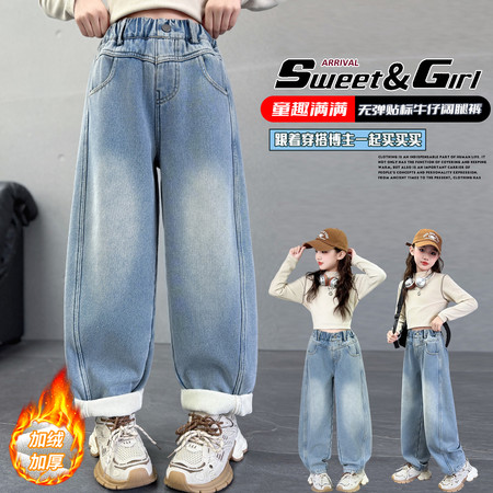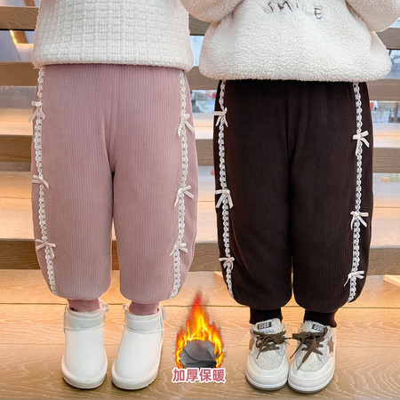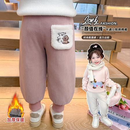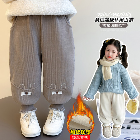 陶陶果童装&6325后袋小字母浅色加绒阔腿裤