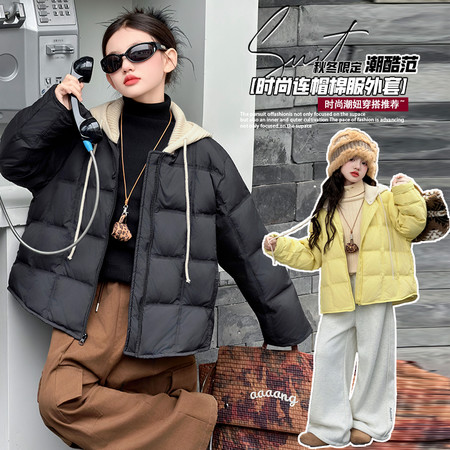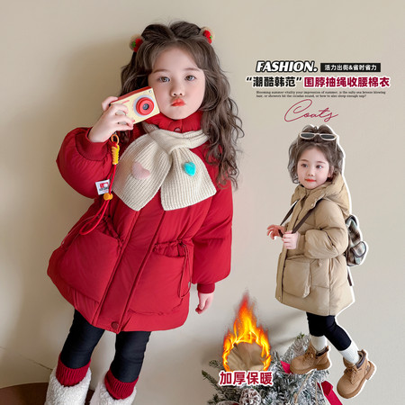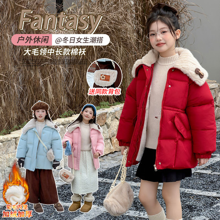 丸子家(贝壳笛)&大毛领中长款加绒棉袄送包包