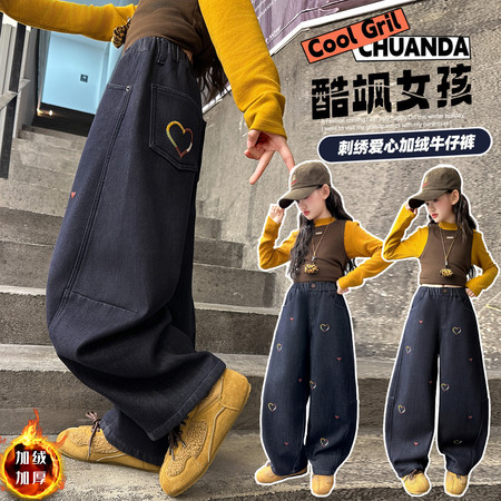 睿豆豆&25277工艺侧边波浪线加绒牛仔裤