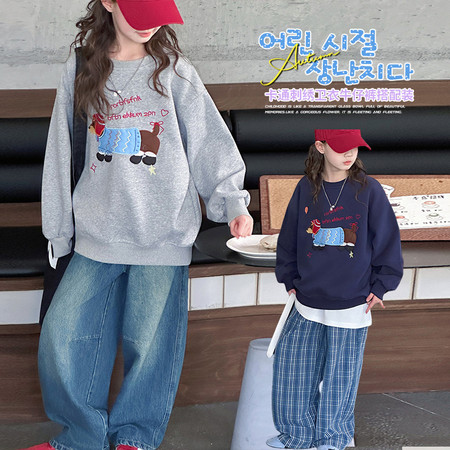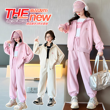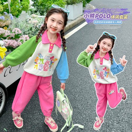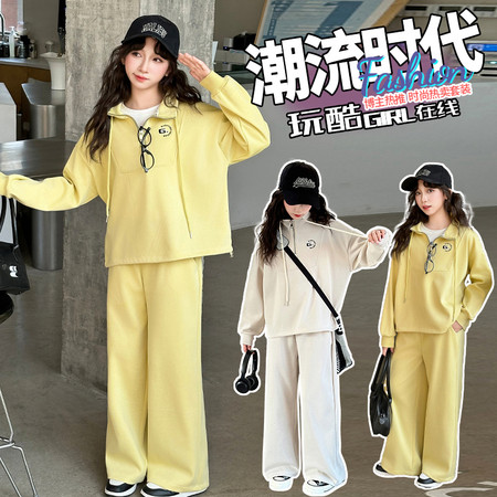 米咔精灵&2760字母刺绣半拉链休闲裤套装休闲韩系