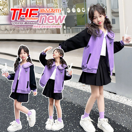 米咔精灵&2520拼袖后背字母印花棒球服春季新款