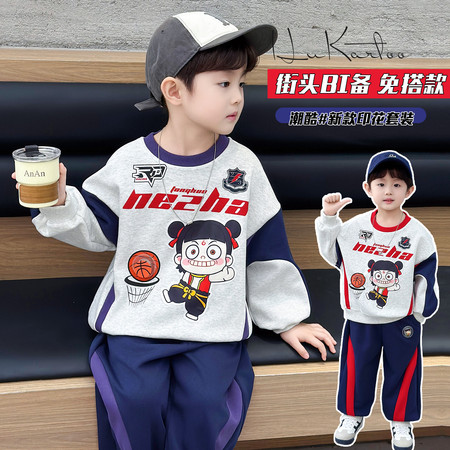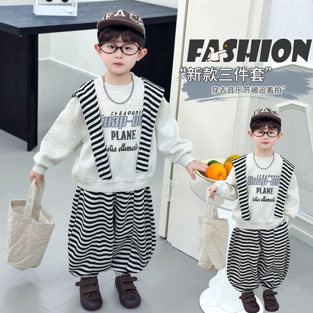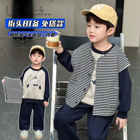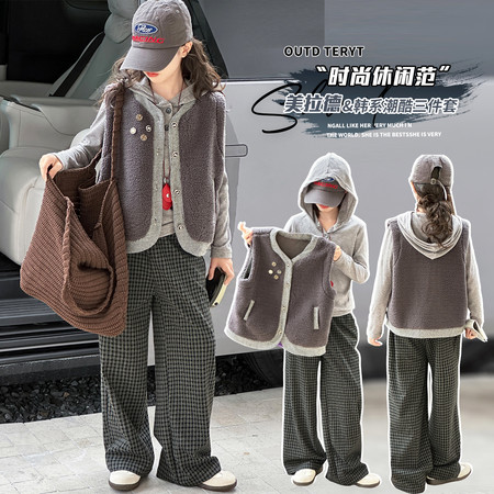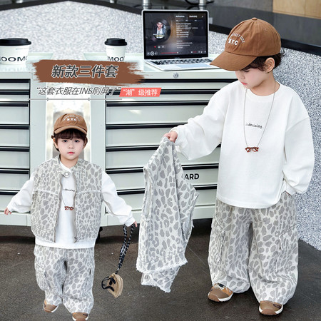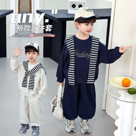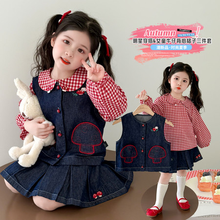 安博童话(原日月鑫童)&2026-15格子衬衫卫衣牛仔裤三件套