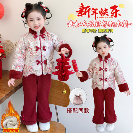 小孩潮品&5151条绒袖蝴蝶花朵旗袍裙