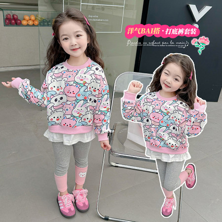 优米家&满印小兔子打底裤套装