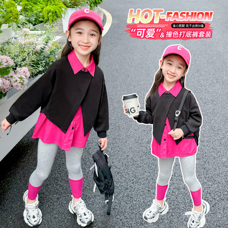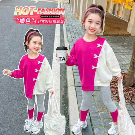 优米家&拼色盘扣打底裤套装