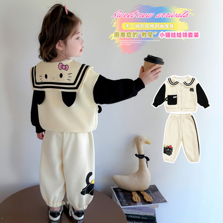 阿不童装&花边衬衫马甲三件套