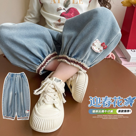 米咔精灵&66002蕾丝花边牛仔裤三件套