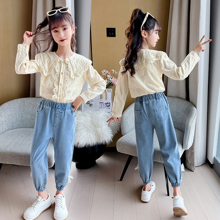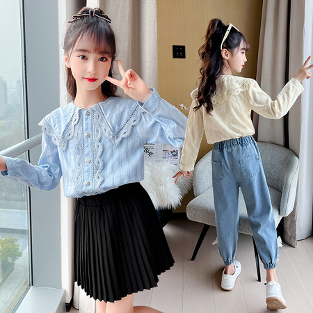 阿不童装&2607款娃娃领蕾丝衬衫套装