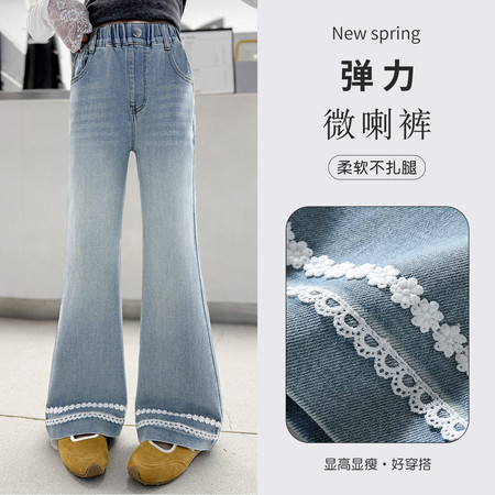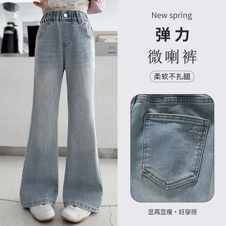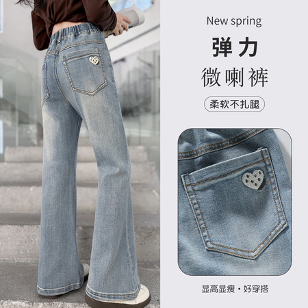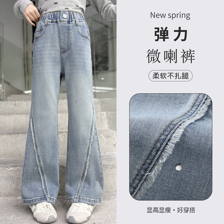 豪涵童装&春款拼接弯刀牛仔阔腿长裤2508