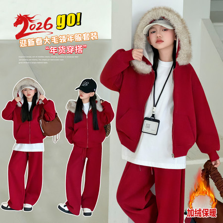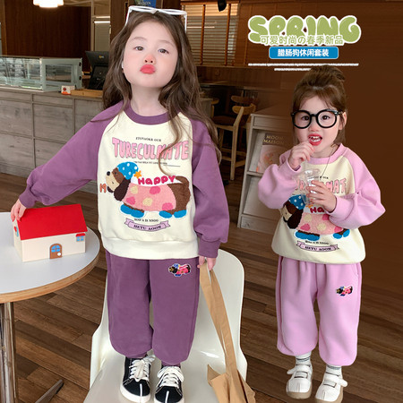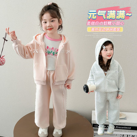米咔精灵&2515拉链连帽卫衣套装春季新款休闲日常