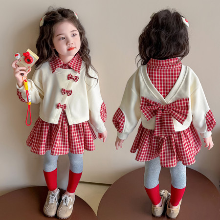 nn童装&25216-开衫格子裙两件套