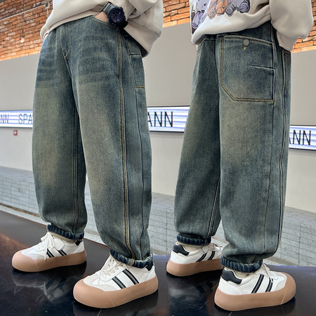 豪涵童装&冬款加绒腰头贴标条绒直筒裤2649