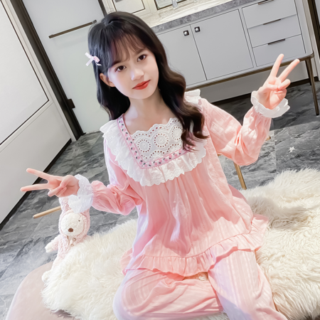 琼瑛网供&2145粉边花边莫代尔公主睡裙网纱家居服