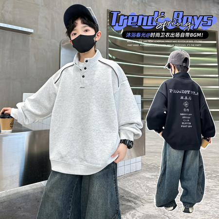 邻家果果&2615衬衫领假两件卫衣套装