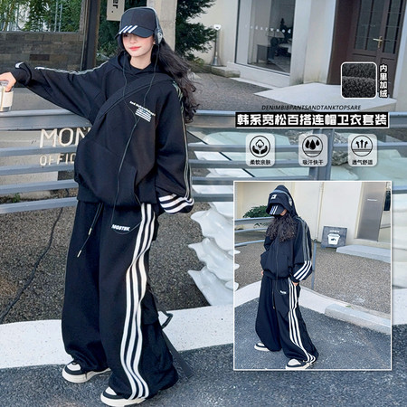 蕊蕊&R98款牛仔针织拼接连帽套装