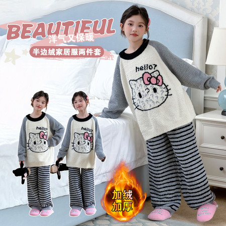 丸子家(贝壳笛)&猫咪半边绒家居服两件套