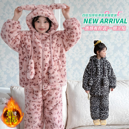 丸子家(贝壳笛)&四层加厚极寒双面绒豹纹睡衣套装
