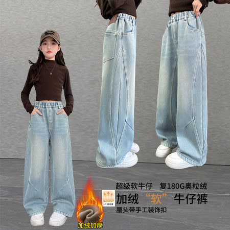 米家衣橱&Y11-26樱桃刺绣奥利绒兰灰牛仔裤