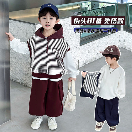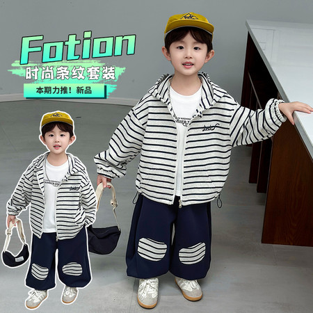 豆贝豆&条纹衬衫打底裤套装