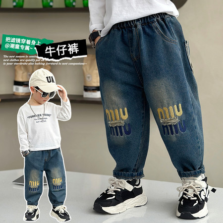 旋风小子&后口袋字母小笑脸直筒裤