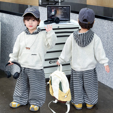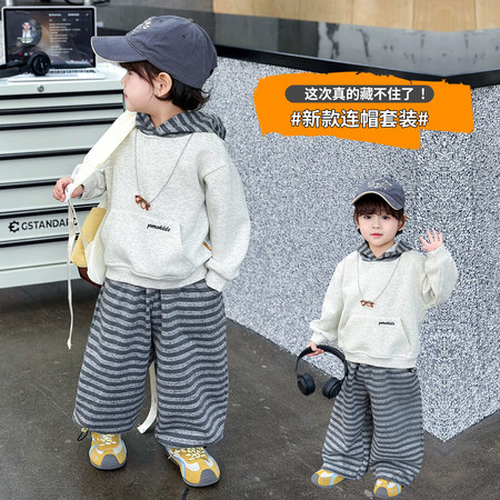 小珰唛&xdm-1817条纹连帽卫衣套装