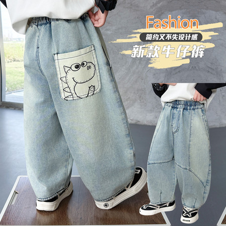小珰唛&xdm-1806后袋卡通恐龙牛仔裤