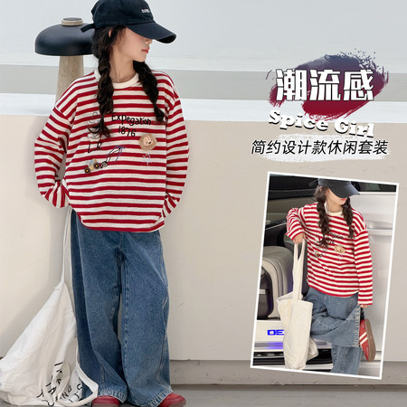 睿豆豆&2510加绒爱心刺绣束脚裤
