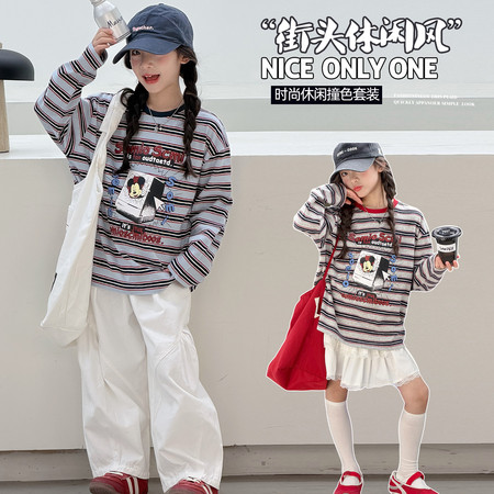 漂亮优贝童装&2929款拉条卫衣针织套装