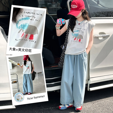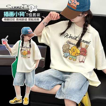 三标齐全,图案注册版权,女童夏季新款休闲套装新